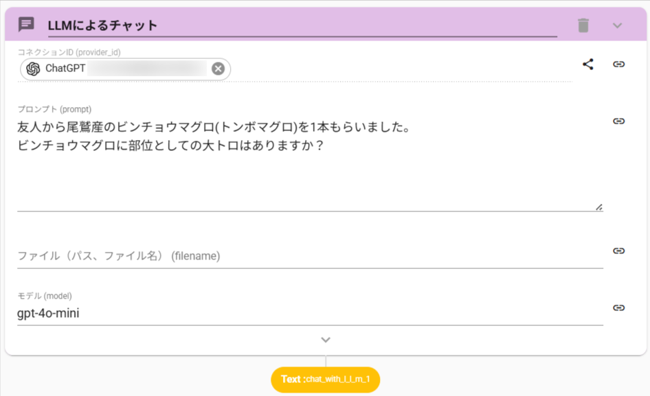ChatWithLLMアクションは、OpenAI APIを使用してChatGPTを操作します。
