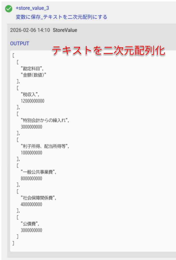あるPDFから、複数の勘定科目を二次元配列にして抜き出すこともできます。