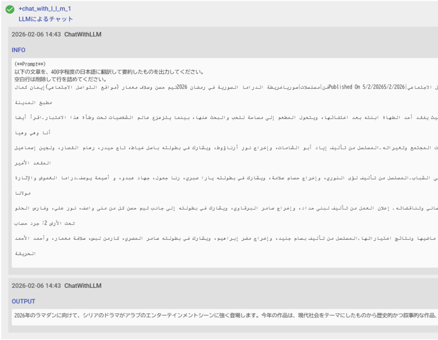 prompt: "以下の文章を、400字程度の日本語に翻訳して要約したものを出力してください。\n空白行は削除して行を詰めてください。\n${mainText.slice(0,4000)}"