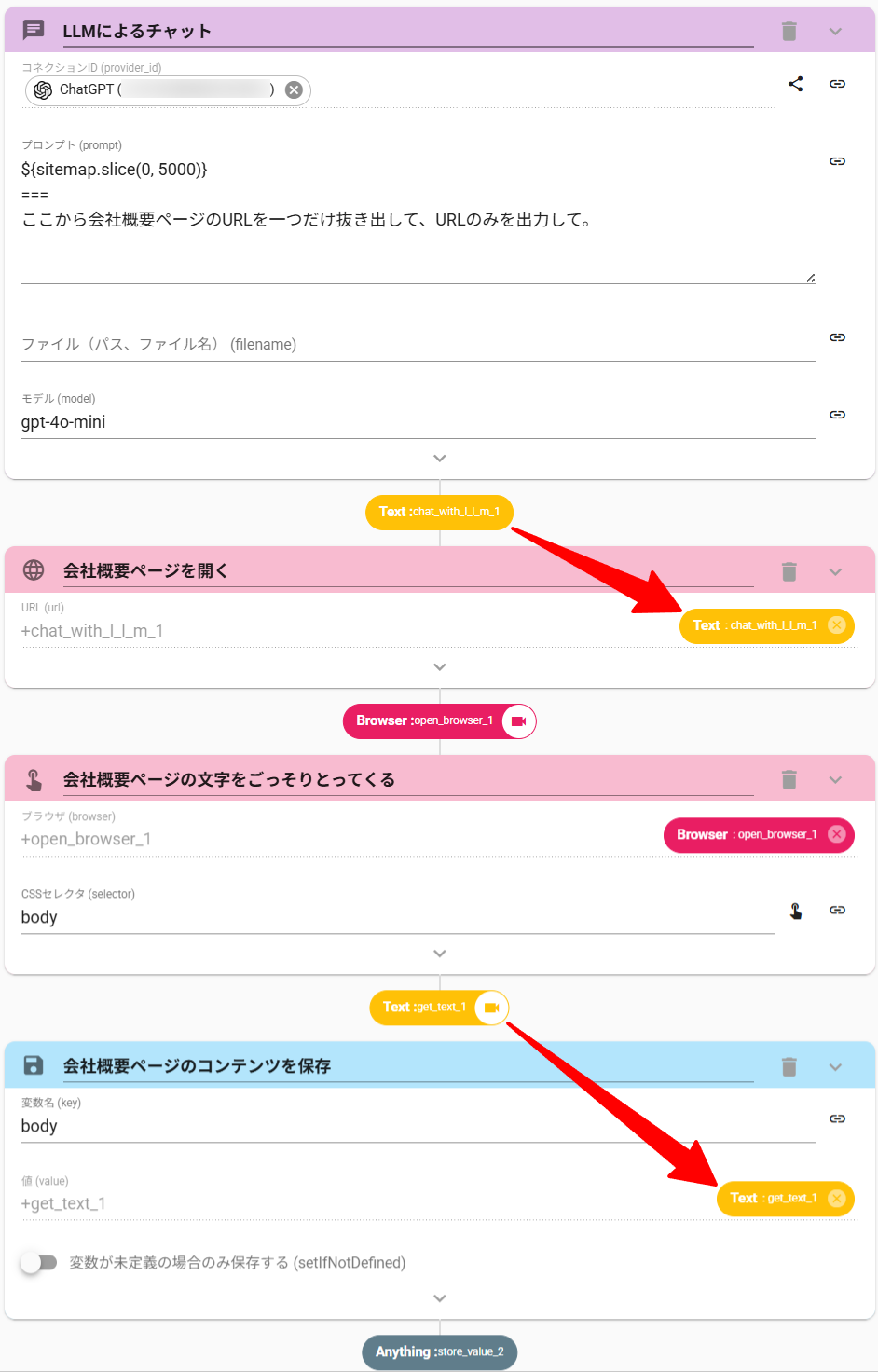 - ChatWithLLMアクションを設定します
