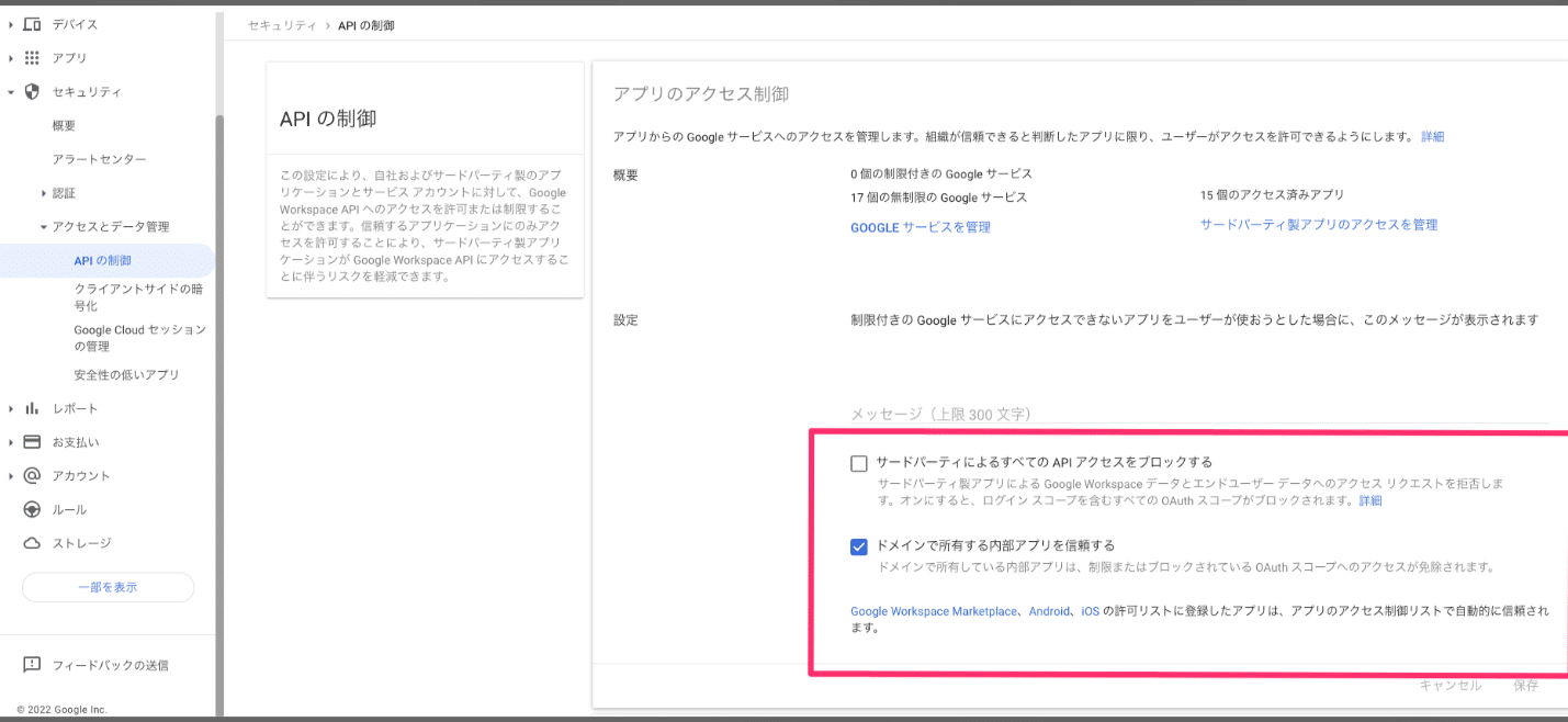※組織のドメイン内にアプリをインストールするには、Google Workspace管理者の権限が必要です。