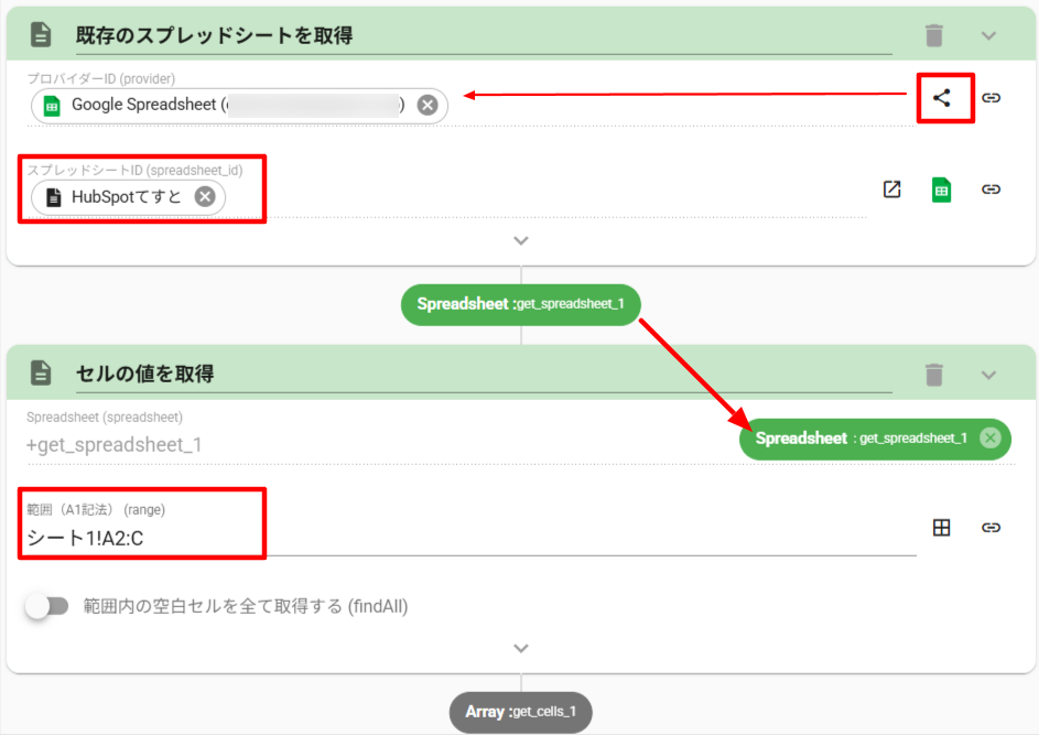 display_name>: '既存のスプレッドシートを取得'