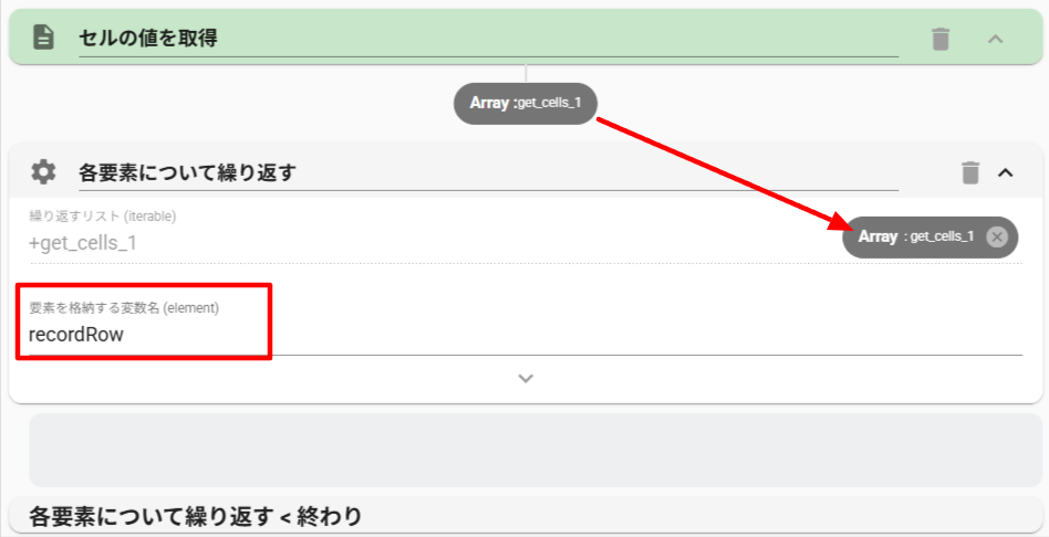 - StoreValue アクション(変数に保存)を設置します。