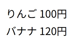 たとえば「商品名」と「価格」を並べた以下のようなテーブルです。