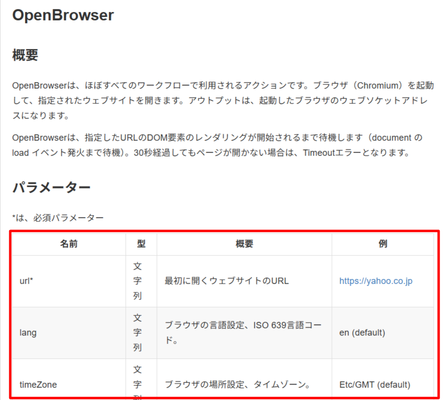 • サイトを開きます https://docs.autoro.io/actions/browser#openbrowser