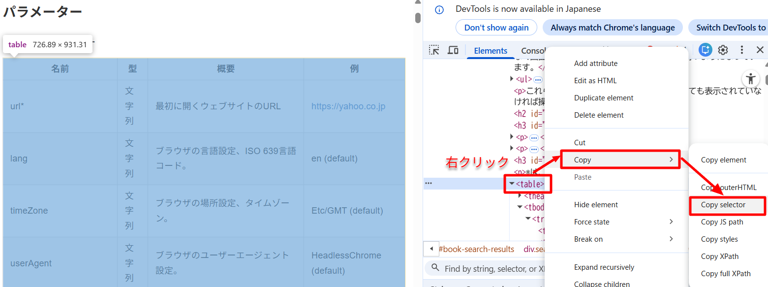 • CSSセレクタには、「table:nth-of-type(1)」を入力します。