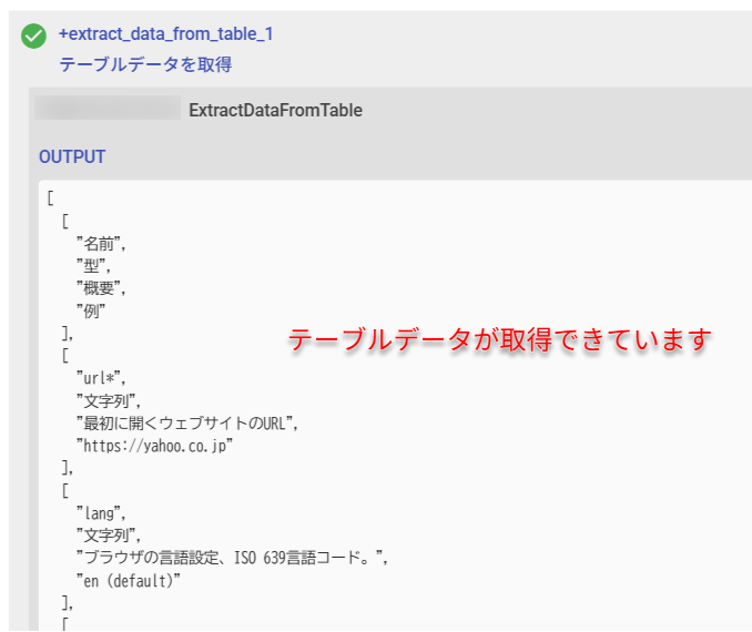 ExtractDataFromTableアクションでは、<table> </table>で作成されたテーブルから各セルのデータを取得できます。