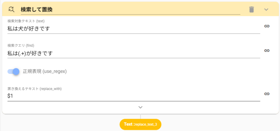 ReplaceTextアクションを使用する場合は、まず検索クエリ欄にテキスト全体を表す正規表現を設定します。