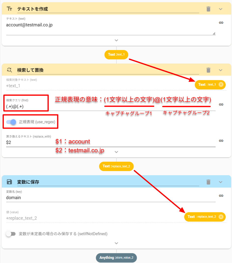 AUTOROでは、キャプチャグループを、ReplaceTextアクションやMatchTextアクションで利用できます。