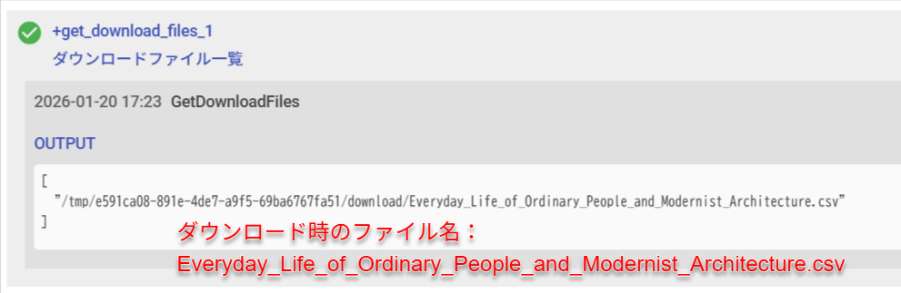- Clickアクション(クリック)で、CSVファイルをダウンロードします。