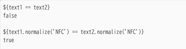 この問題は、関数 normalize(‘NFC’) を利用することで同一文字として判定させることが可能です。